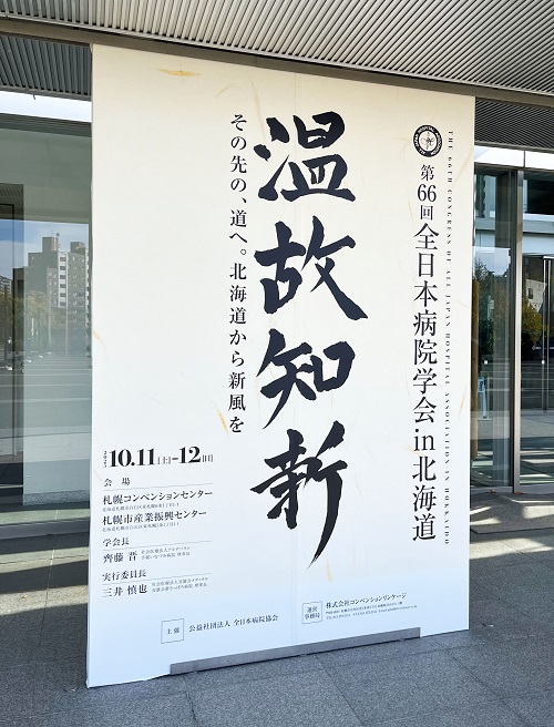 慰安旅行で北海道から帰ってきたばかりですが、 2025年10月11日(土)、北海道で開催された「第66回全日本病院学会」に参加しました。 ポスターセッションでは、「入院患者の自発的な離床を促進させる」というテーマで発表を行いました。 質疑応答では多くの方からご質問や前向きご意見をいただき、今後の取り組みに生かせる大変有意義な発表となりました。