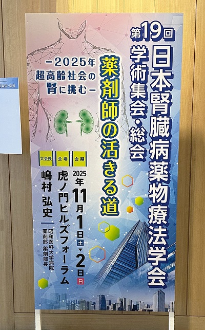 11月1日(土)~2日(日)に虎ノ門ヒルズフォーラムで開催された第19回日本腎臓病薬物療法学会学術集会・総会にて、一般演題発表を行いました。