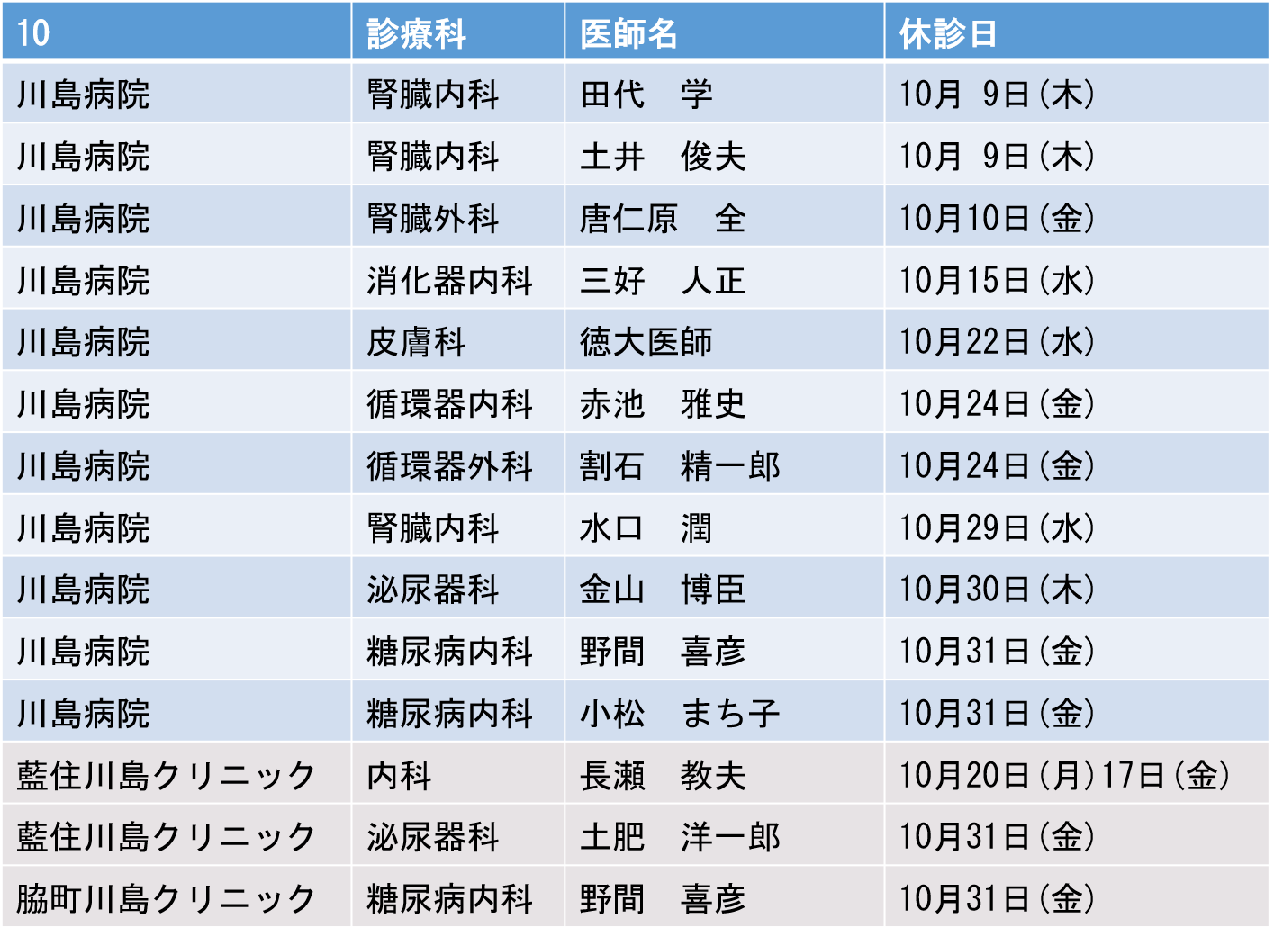 HOME > お知らせ > 2025年10月外来休診日のお知らせ
